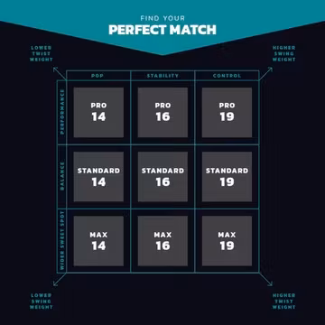 Pro 14: Explosiv kraft och snabba svingar — perfekt för aggressiva spelare.